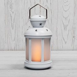 Декоративный фонарь 12х12х20,6 см, белый корпус, теп.белый цвет свечения с эффектом пламени свечи NEON-NIGHT
