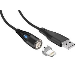 Кабель USB 2.0 - Lightning, 1м, магнитный, нейлон, серый, Jet.A (QC,3A)