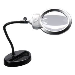 Лупа настольная малая с подсветкой 3/12х (60Led, прищепка, гибкий штатив)