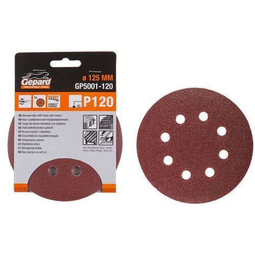 Шлифлист 125мм круг P240 8 отв. на ворс. подложке (5шт) GEPARD
